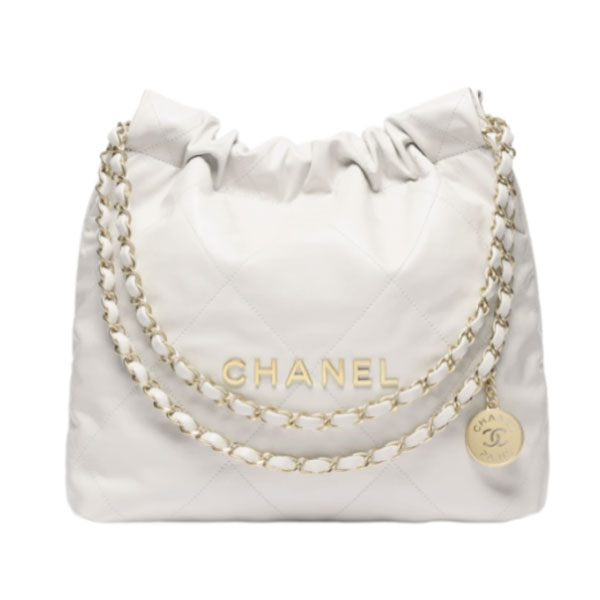 • 샤넬 22 미디엄 샤이니 카프스킨 체인 핸드백 화이트 AS3260
