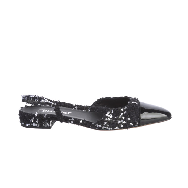 샤넬 에스카르팽 라인의 트위드 슬링백 펌프스
